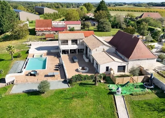 Situada a una distancia de 7 km del Castillo de Monbazillac, la Villa Del Castagnol Saint-Nexans ofrece una terraza con vistas a la piscina.